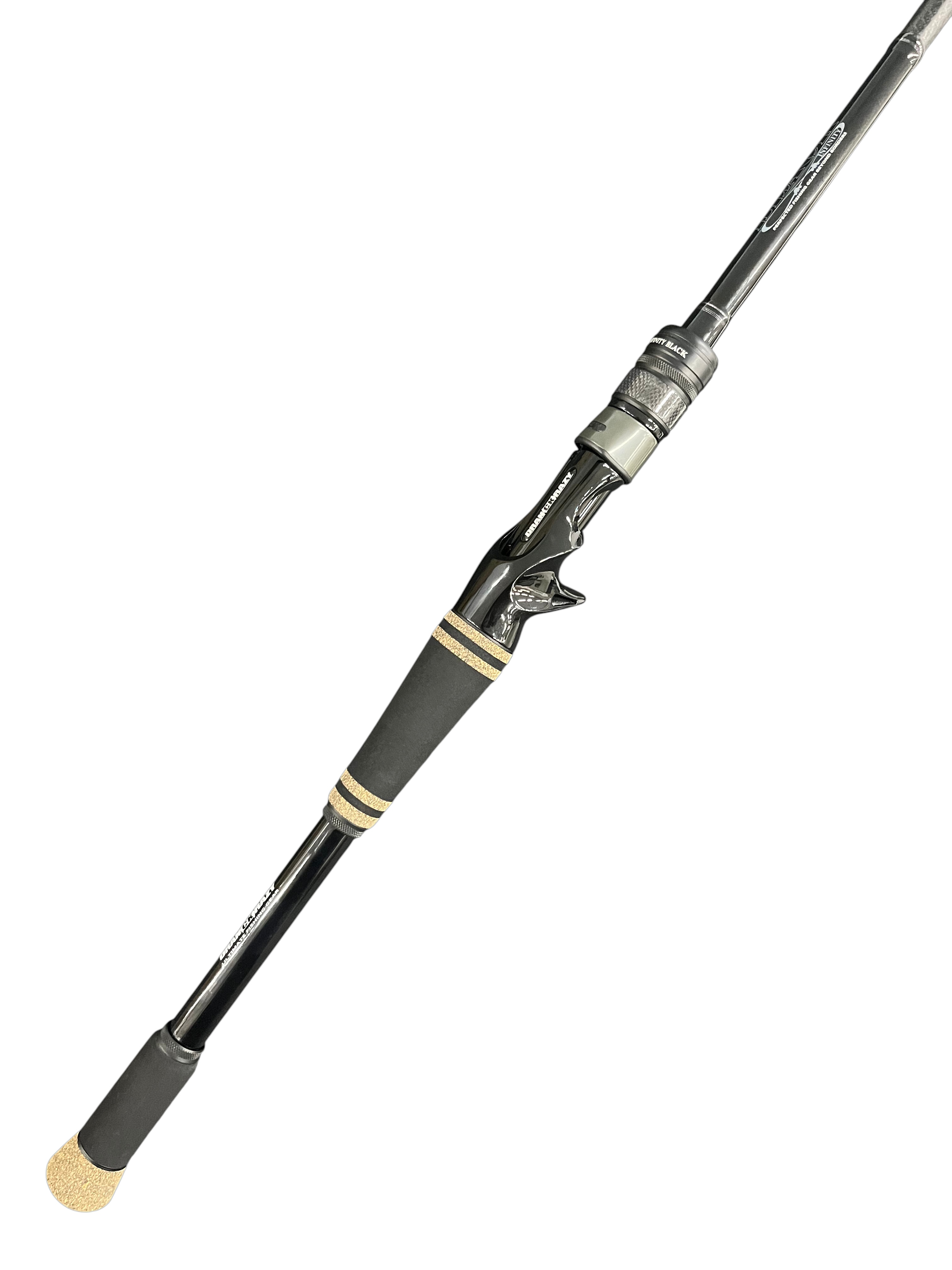 3oz前後のビッグベイトをフルキャストできる強靭さを持ちますが、ただ硬いだけのロッドでは無くしっかりと曲がるのでジグ、スイムベイト、フロッグゲームは高次元に対応です。